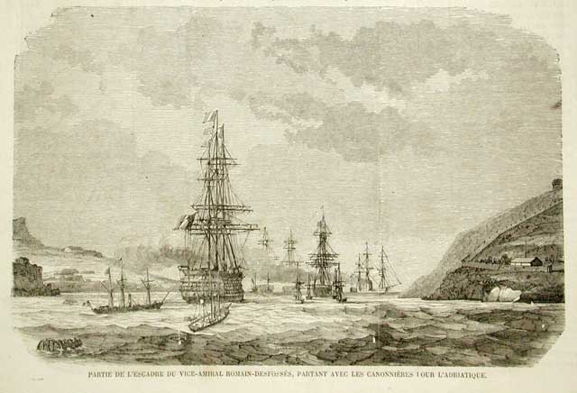 Partie de l'Escadre du Vice-Amiral Romain Desfosses, partant avec les canonnieres pour l'Adriatique.