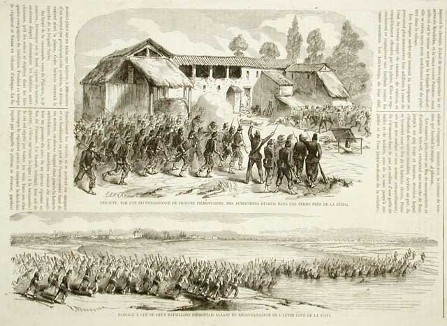 Passage a gué deux bataillons piemontais allant en reconnaissange de l'autre cote de la Sesia