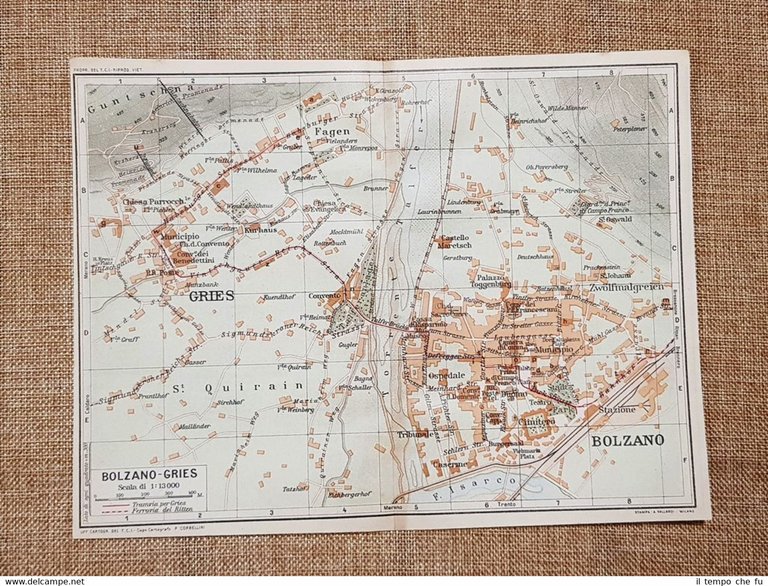 Pianta o piantina del 1920 La città di Bolzano Trentino-Alto Adige T.C.I.