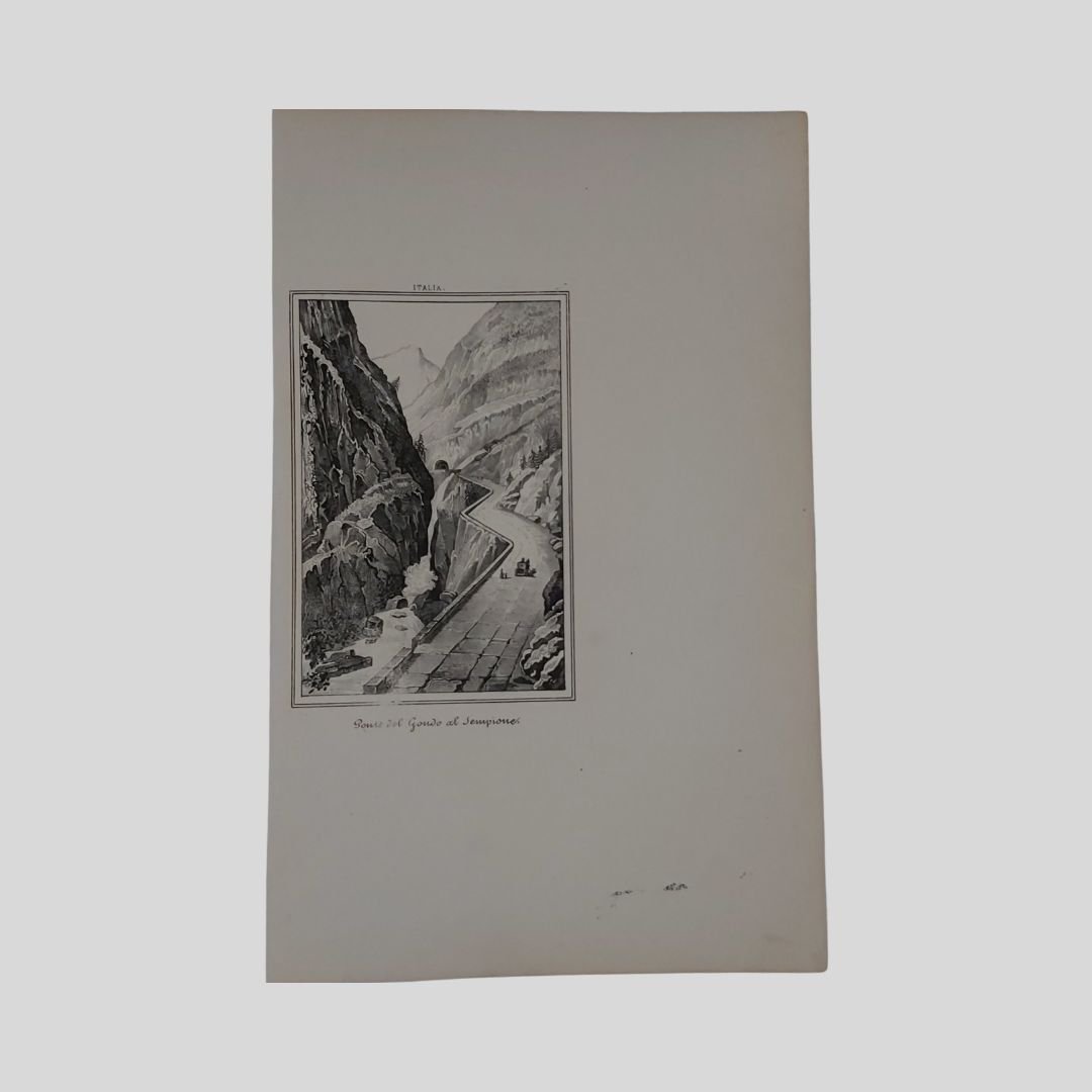 Litografia, 1852, cm 25,4×16 (tavola). Segni d’uso. Tratta da: Cesare Malpica, Panorama dell’universo, Napoli, Stab. dell’Ateneo 1852. Cesare Malpica. Prima avvocato poi insegnante infine giornalista, deve la sua fortuna letteraria – sebbene non univocamente giudicata dalla critica – proprio al reportage. Per lo più concentrate tra gli anni Quaranta e Cinquanta dell’Ottocento, escono le sue impressioni di viaggiatore dedicate a Venti giorni a Roma, Un mese negli Abruzzi: impressioni, ma anche Dal Sebeto al Faro: impressioni di un viaggio nelle Calabrie, e ancora Toscana, Umbria e Magna Grecia per arrivare, nel 1847, a una monografia dedicata alla Basilicata.