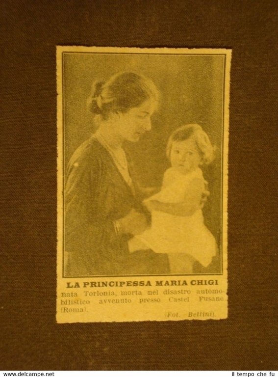 Rara stampa Estratta da Rivista d'epoca del 1923 . .stampa che ha quindi oltre 92 anni! La Principessa Maria Chigi Morta nel disastro automobilistico di Castel Fusano nel 1923 II1923-029 Dimensioni Cm 6,00 x 10,00 Qualora vogliate delle scansioni migliori contattateci, soddisferemo ogni vostra richiesta. PaypalCarta di creditoBonifico bancario Accuratamente adagiate su un cartoncino e protette da pellicola trasparente rigida,il tutto viene inserito dentro plico di adeguate dimensioni per proteggerne l'integrità.