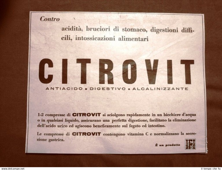 Pubblicità del 1957 Citrovit Compresse contro acidità dello stomaco Prodotto IFI