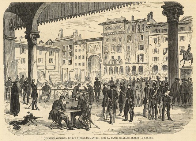 Quartier general du Roi Victor-Emmanuel, sur la place Charles-Albert, a Casale