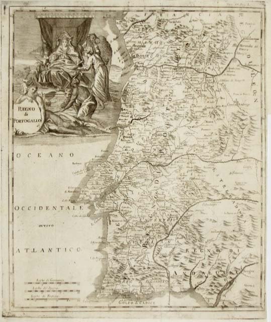 Carta geografica, decorativo cartiglio. Rara edizione stampata a Napoli
