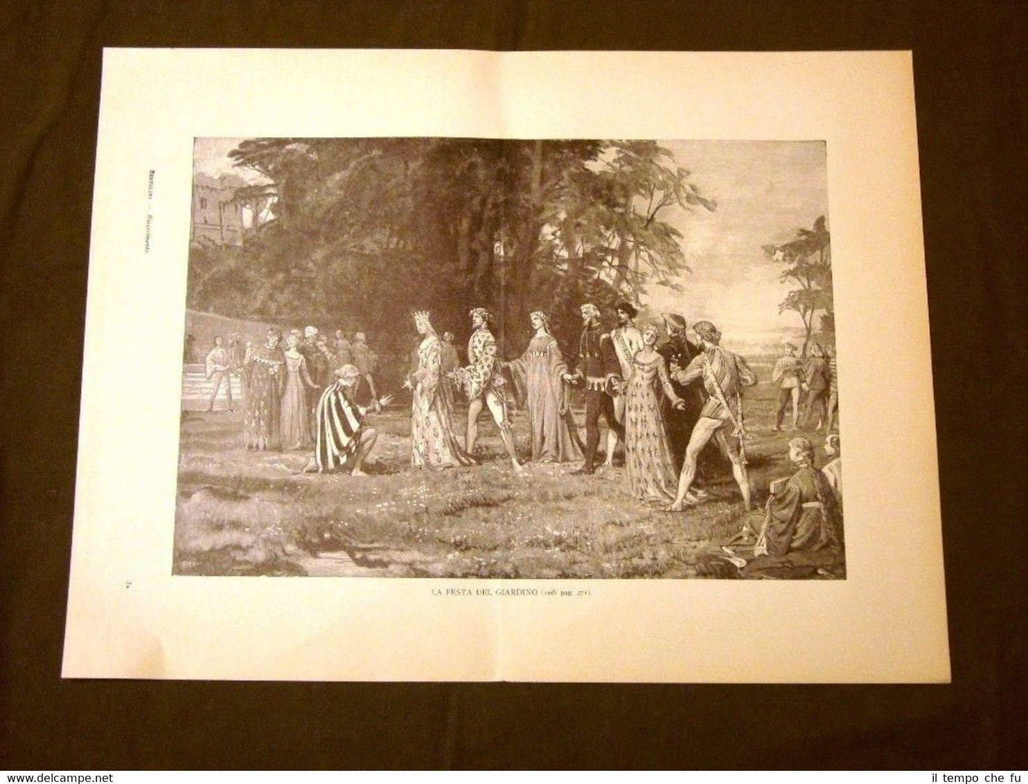 Rinascimento d'Italia Giovanna I e la festa del giardino Incisione di Pogliaghi