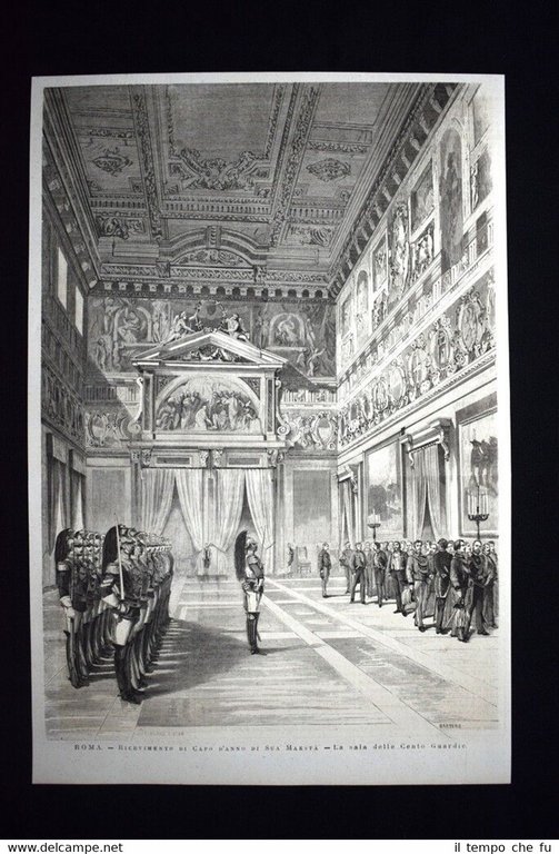 Roma:Ricevimento di Capo d'Anno - La sala delle Cento Guardie Incisione del 1876