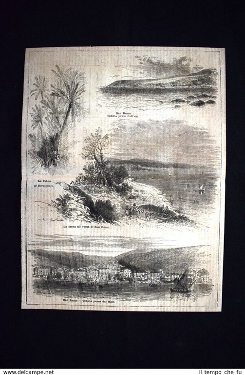 San Remo veduta presa dall'est - Le palme di Bordighera Incisione del 1876
