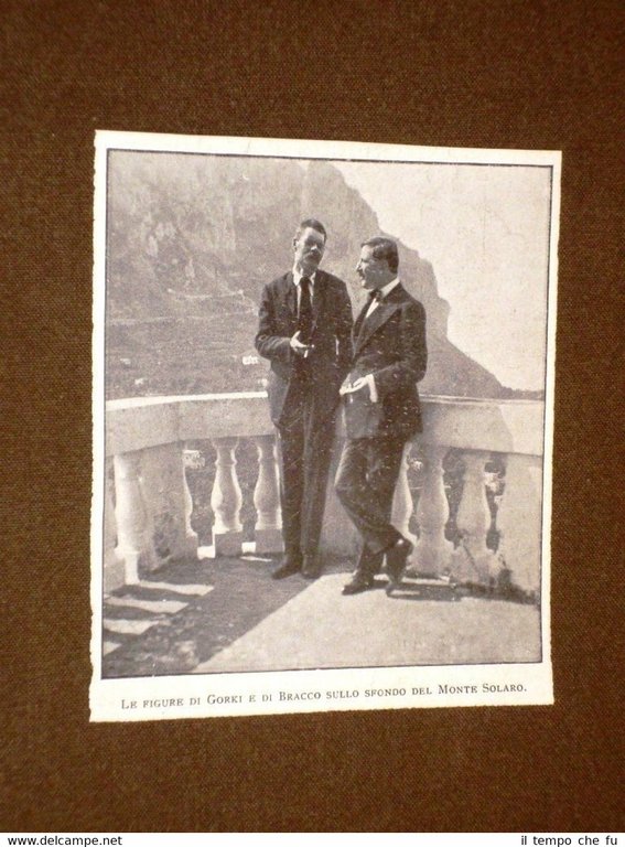 Rara Stampa Estratta da Rivista d'epoca di primi del 1900 Scrittore Maksim Gor'kij o Aleksej Maksimovi? Pe?kov di Ni?nij Novgorod e Di Bracco nel 1915 Sullo sfondo il monte Solaro II1915-042 Dimensioni Cm 9,00 x 10,00 Qualora vogliate delle scansioni migliori contattateci, soddisferemo ogni vostra richiesta. PaypalCarta di creditoBonifico bancario Accuratamente adagiate su un cartoncino e protette da pellicola trasparente rigida,il tutto viene inserito dentro plico di adeguate dimensioni per proteggerne l'integrità.