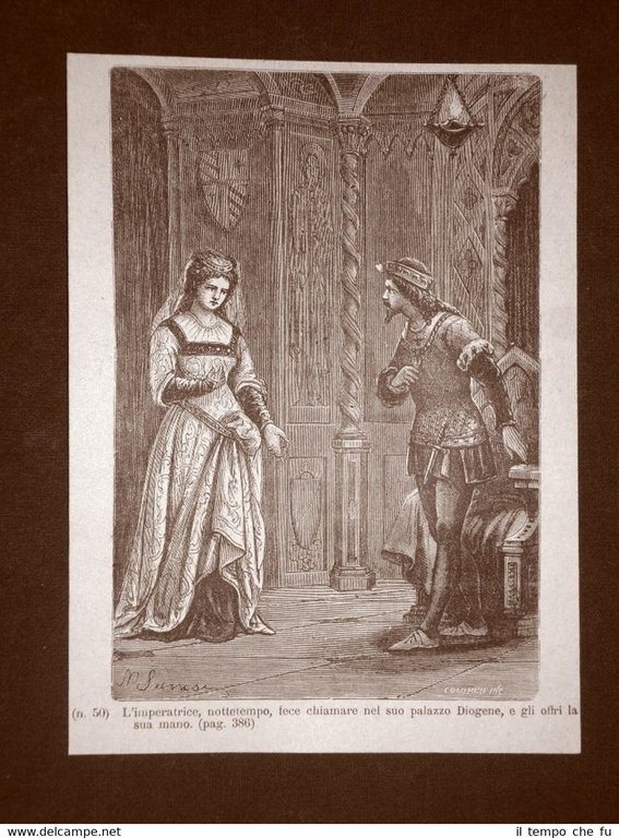 Stampa del 1888 L'Imperatrice romana Eudossia II e Diogene
