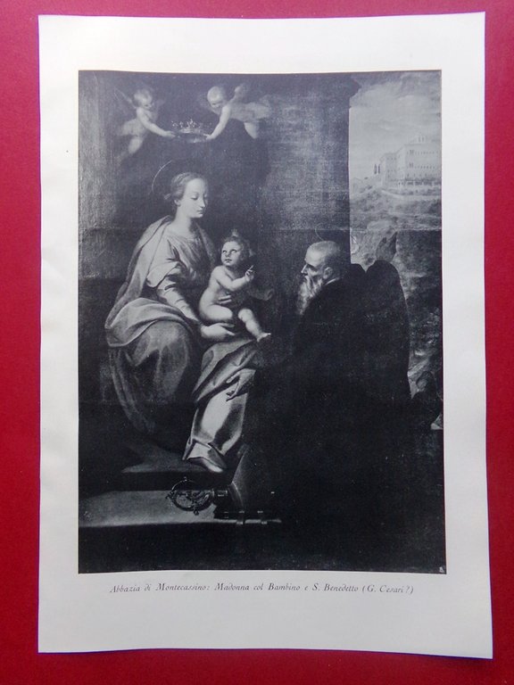 Stampa del 1929 Abbazia di Montecassino Madonna col Bambino Benedetto Cesari