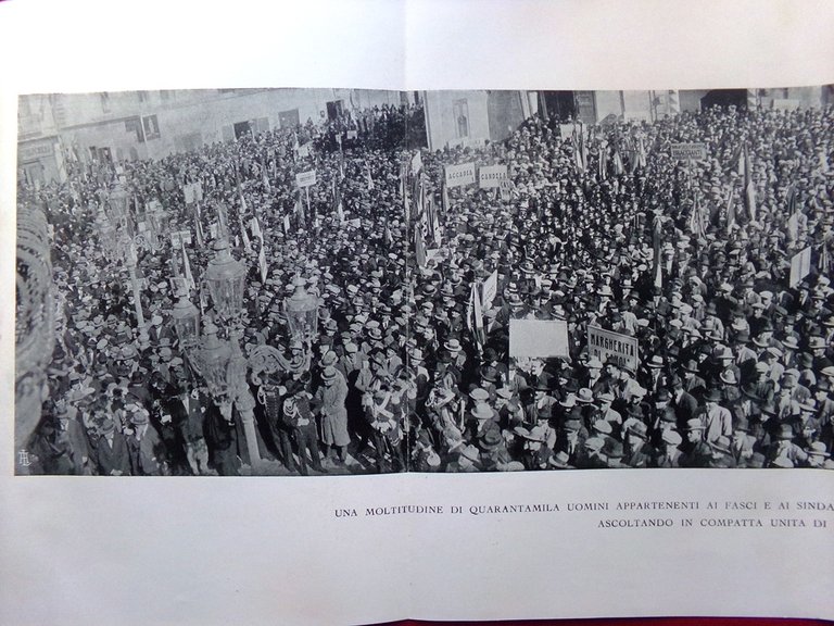 Una moltitudine di quarantamila uomini appartenenti ai fasci e ai sindacati della capitanata celebra a Foggia l'anniversario della marcia su Roma ascoltando in compatta unità di spiriti il discorso di Edmondo Rossoni