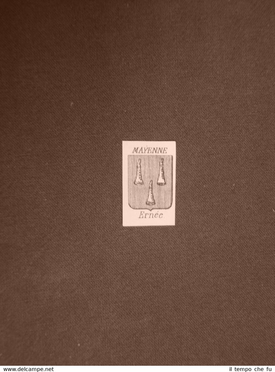 Stemma o blasone della città di Ernée - Francia Anno 1865 Araldica