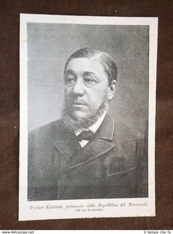 Rara Stampa Estratta da Rivista d'Epoca Stephanus Johannes Paul Kruger di Colesberg Presidente della Repubblica del Transvaal IP1899-039T Dimensioni Cm 11,00 x 16,50 Qualora vogliate delle scansioni migliori contattateci, soddisferemo ogni vostra richiesta. Paypal Carta di credito Bonifico bancario Accuratamente adagiate su un cartoncino e protette da pellicola trasparente rigida il tutto viene inserito dentro plico di adeguate dimensioni per proteggerne l'integrità