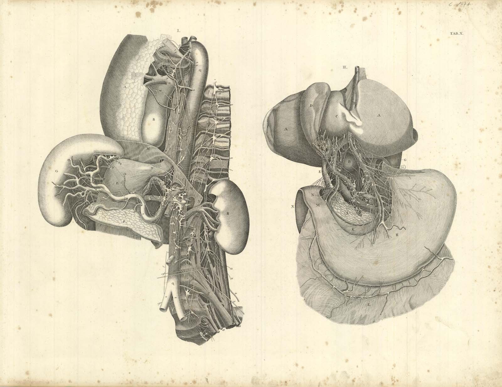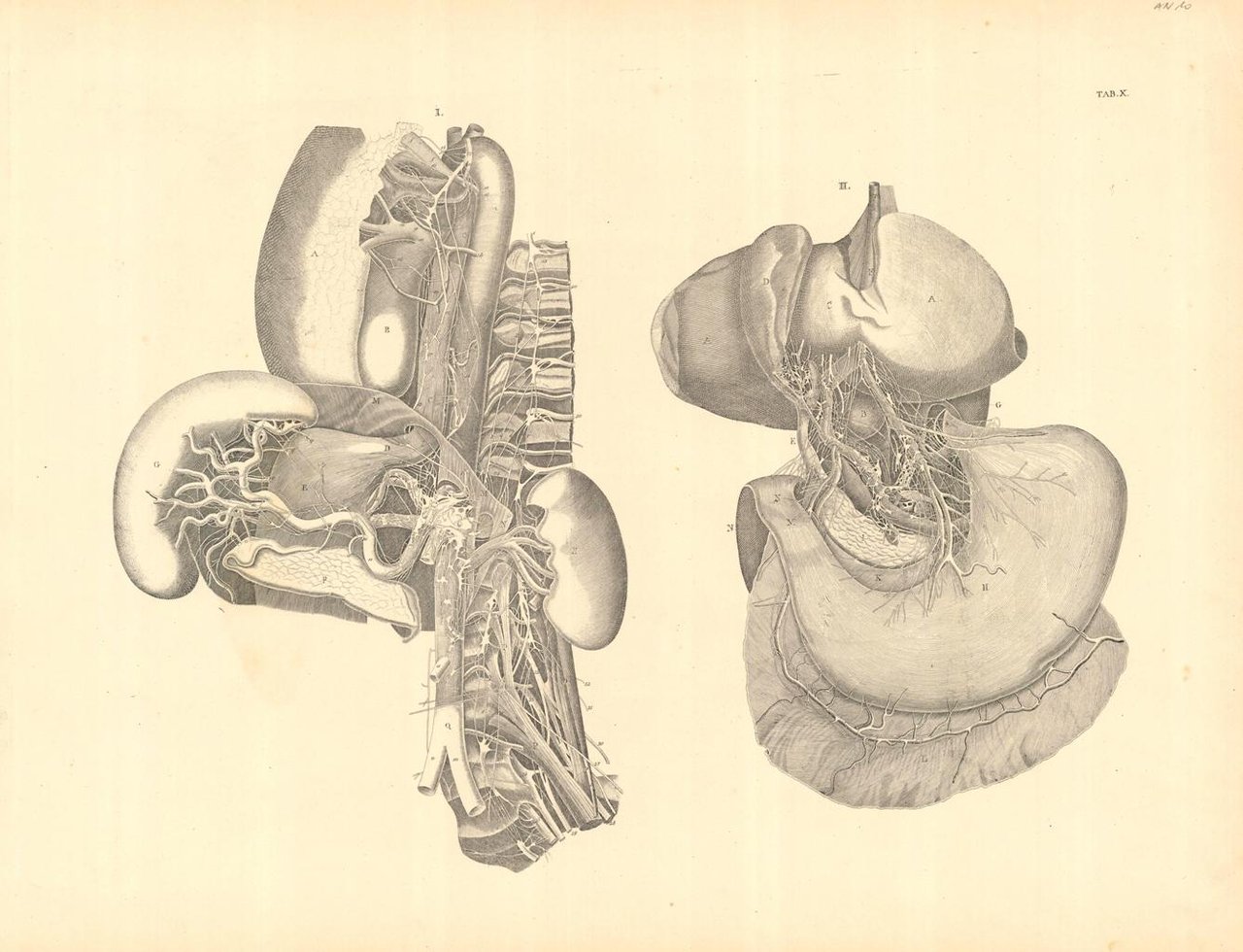 TAB X (vascolarizzazione degli organi intraddominali) | Gravures | Weber, Moritz Ignaz (1795-1875)