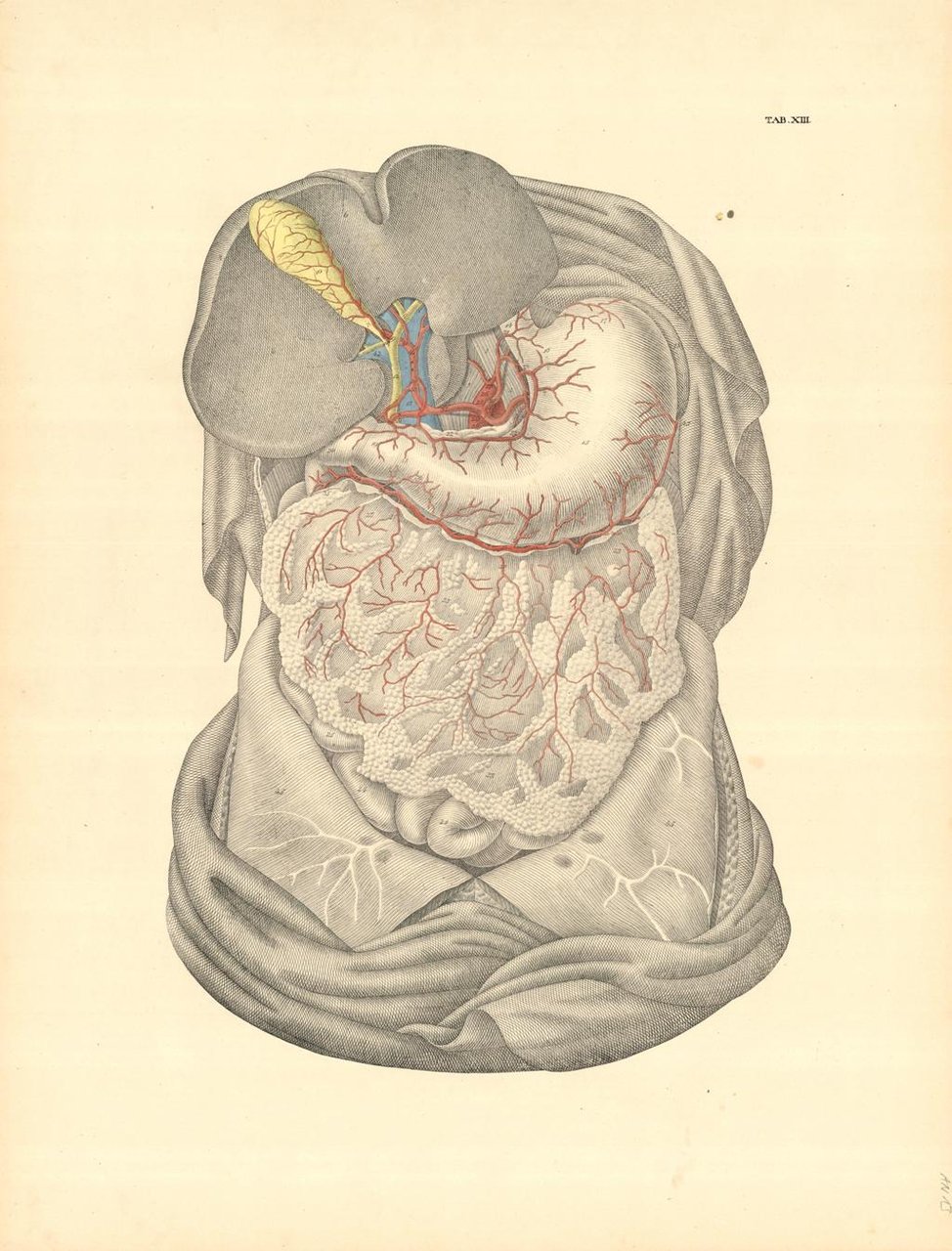 TAB XIII (vascolarizzazione epato-gastrica) | Gravures | Weber, Moritz Ignaz (1795-1875)