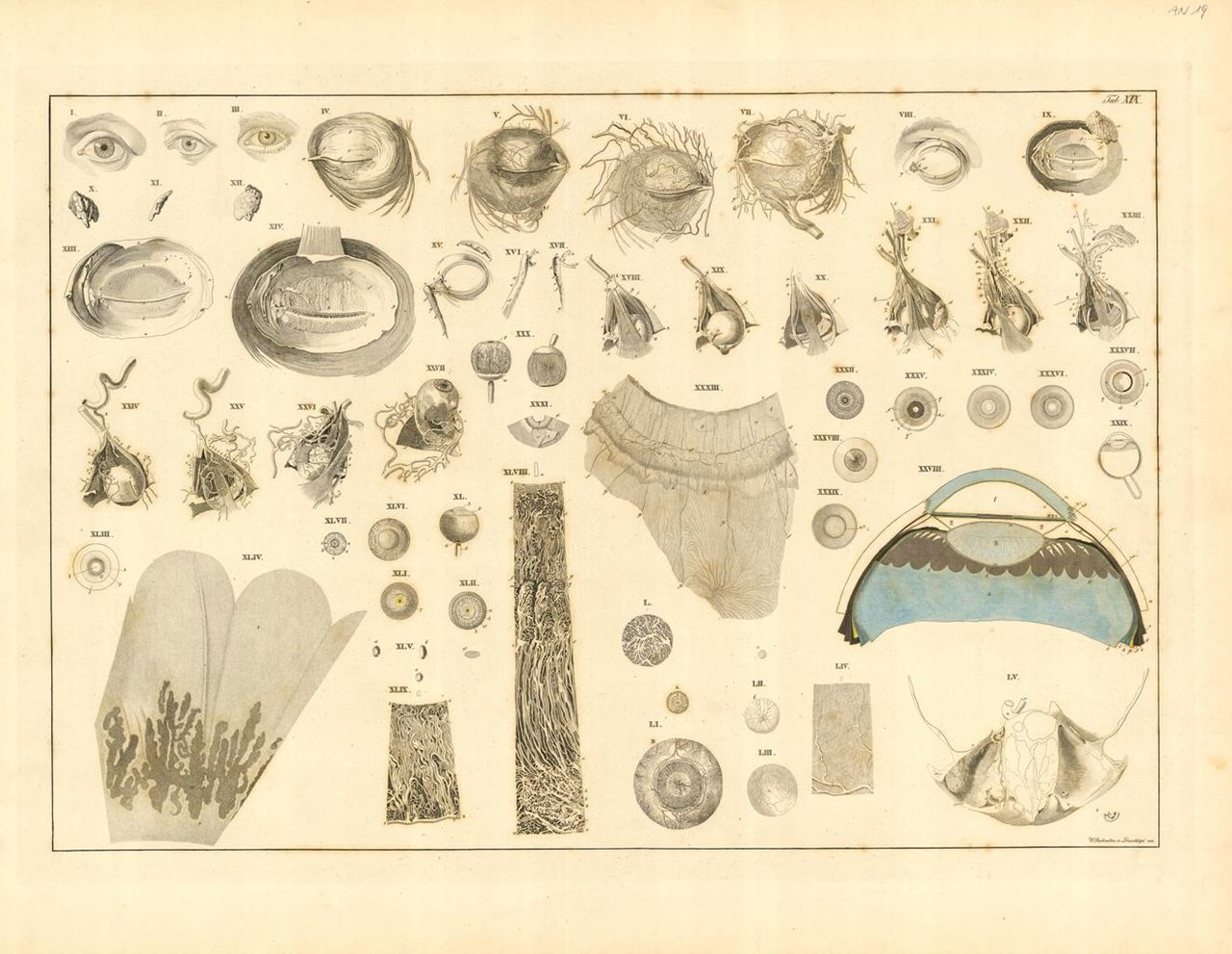 Rappresentazione degli organi a grandezza naturale del corpo umano. Moritz Ignaz Weber (1795-1875) fu stimato Professore di Anatomia Comparata e Patologica. Spese tutta la sua vita nel campo dell'anatomia e delle scienze associate pubblicando numerosi studi. L’Anatomischer Atlas, che raffigura il corpo umano in 84 tavole litografiche a grandezza naturale, è senza dubbio uno dei suoi lavori più importanti. Autore: Weber, Moritz Ignaz (1795-1875). Luogo: Anatomia. Anno: 1849. Tecnica: litografia. Dimensioni: mm 520x670 il foglio