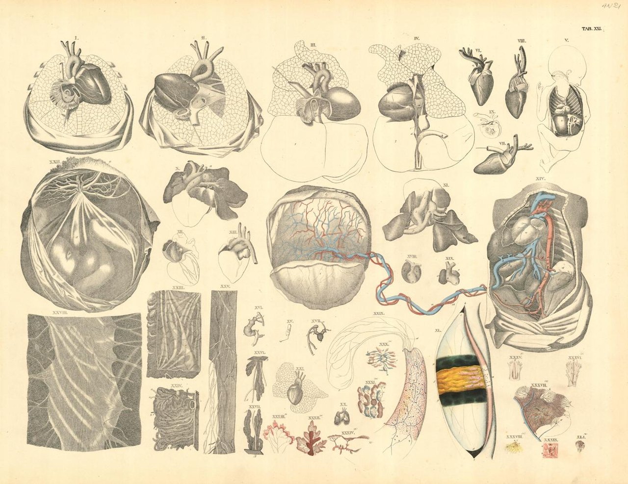 TAB XXI (vascolarizzazione della placenta e fetale) | Gravures | Weber, Moritz Ignaz (1795-1875)