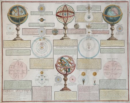 Tableau Analytique des différentes positions de la Sphère, des différens systèmes, des révolutions. | Gravures | DELAMARCHE Charles François