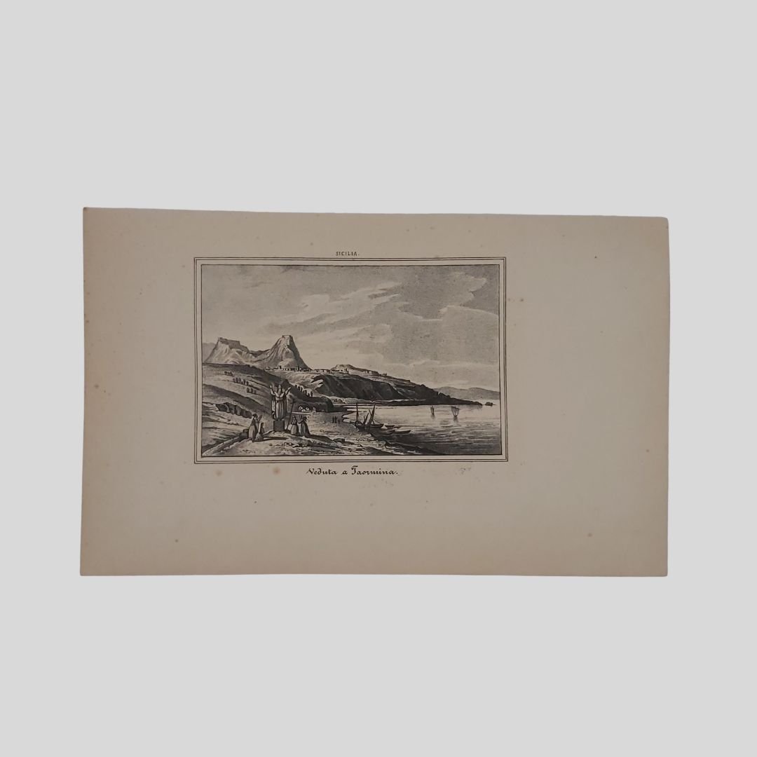 Litografia, 1852, cm 25,3×15,7 (tavola). Lievi fioriture. Tratta da: Cesare Malpica, Panorama dell’universo, Napoli, Stab. dell’Ateneo 1852. Cesare Malpica. Prima avvocato poi insegnante infine giornalista, deve la sua fortuna letteraria – sebbene non univocamente giudicata dalla critica – proprio al reportage. Per lo più concentrate tra gli anni Quaranta e Cinquanta dell’Ottocento, escono le sue impressioni di viaggiatore dedicate a Venti giorni a Roma, Un mese negli Abruzzi: impressioni, ma anche Dal Sebeto al Faro: impressioni di un viaggio nelle Calabrie, e ancora Toscana, Umbria e Magna Grecia per arrivare, nel 1847, a una monografia dedicata alla Basilicata.