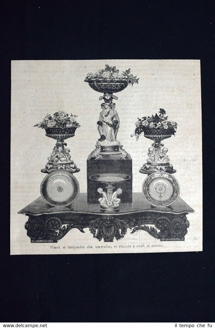 Vasi e trionfo da tavola, di Pellatt e Comp. di Londra Incisione del 1875