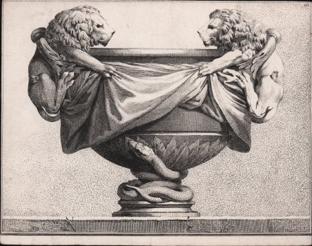 Acquaforte, 1764, priva di data e firma. Della serie Suite de vases tirée du cabinet de Monsieur du Tillot marquis de Felino, da soggetti di E. A. Petitot. ' Realizzata nel 1764, questa raccolta di 30 tavole incise all’acquaforte da Benigno Bossi e basate sui disegni di Petitot, presenta vasi di pura invenzione ornamentale. Tre di questi sono stati realizzati e collocati nei Giardini di Parma. Nel lavoro dell’artista su questi vasi nello stile neo-classico le forme diventano astratte e puramente estetiche. In un mix di motivi ispirati all’antichità: pigne, scanalature, foglie di acanto, ghirlande, fregi, teste di leone, Petitot dimentica la funzionalità dell’oggetto «vaso» reinventandolo. Petitot elabora il gusto dell’antico creando una nuova grammatica visiva che mescola soggetti umani, animali, ghirlande, elementi architettonici classici per questa collezione di vasi straordinari. Un risultato armonico che mescola fantasia, architettura e regole Vitruviane. Bossi fu un esperto in tutti i procedimenti dell'incisione, da quelli lineari a quelli di tono - L'acquatinta (lavis) fu da lui portata al massimo delle sue possibilità di rendimento, sia come mezzo in sé sia in associazione con altri. Molta parte della sua attività di incisore fu dedicata alle opere del Parmigianino, per cui nutrì un vero culto. Del Petitot incise, oltre alla ' Suite de vases tirée du cabinet de Monsieur du Tillot marquis de Felino., ' Milano 1764, alcuni ' Caminetti ' di ispirazione piranesiana e una ' Mascarade à la Grecque d'après les dessins originaux tirés du cabinet de. le marquis de Felino., ' Parma 1771. Non contento di fare, come incisore, solo opera di riproduzione, intagliò fin dai primordi anche rami di sua invenzione, e su di essi anzi si compiacque di porre l'accento, quasi a rivendicare la sua genialità creativa, riunendoli più e più volte, con varianti, in volumi dai titoli diversi: Raccolta di teste inventate, disegnate ed incise da Benigno Bossi; ' Fisionomie possibili; ' Prove all'Acquaforte; ' Miscellanea; ' Trofei, ' ecc. La produzione delle "teste" e delle "fisionomie possibili" corrispondeva a una moda del tempo, che affondava le radici nelle famose deformazioni di Leonardo, ma che nel campo specifico dell'incisione era stata sfruttata specialmente dal Grechetto nel Seicento e dai Tiepolo nel Settecento: gli autori cioè che il Bossi sembra tenere specialmente presenti. Alle teste di maniera, quali di prevalenza venivano prodotte in quegli anni, egli volle evidentemente contrapporre le sue teste dal vero, notevoli per la loro icasticità e puntualizzazione espressiva. Bibliografia cfr. M. CASTELLI ZANZUCCHI, Contributo allo studio di Benigno Bossi, "Parma per l'arte", 1960, 10, pp. 149-185. Etching, 1764, without date and signature From the Suite de vases tirée du cabinet de Monsieur du Tillot marquis de Felino, after E. A. Petitot. Made in 1764, this collection of 30 plates etched by Benigno Bossi and based on Petitot's drawings features vases of pure ornamental invention. Three of these were made and placed in the Gardens of Parma. In the artist's work on these vases in the neo-classical style, the forms become abstract and purely aesthetic. In a mix of motifs inspired by antiquity: pine cones, grooves, acanthus leaves, garlands, friezes, lion heads, Petitot forgets the functionality of the "vase" object by reinventing it. Petitot elaborates the taste of the antique by creating a new visual grammar that mixes human subjects, animals, garlands, and classical architectural elements for this collection of extraordinary vases. A harmonious result that mixes fantasy, architecture and Vitruvian rules. Bossi was an expert in all processes of engraving, from linear to tone - Aquatint (lavis) was taken by him to its fullest performance potential, both as a medium in itself and in association with others. Much of his activity as an engraver was devoted to the works of Parmigianino, for whom he nurtured a true cult. Of Petitot he engraved, in addition to the Suite de vases tirée du cabinet de Monsieur du Tillot marquis de Felino., Milan 1764, some Piranesi-inspired Fireplaces and a Mascarade à la Grecque d'après les dessins originaux tirés du cabinet de. le marquis de Felino., Parma 1771. Not content to do, as an engraver, only work of reproduction, he carved from the very beginning also plates of his own invention, and on them indeed he was pleased to place the emphasis, as if to vindicate his creative genius, bringing them together again and again, with variants, in volumes with different titles: Raccolta di teste inventate, disegnate ed incise da Benigno Bossi; Fisionomie possibili; Prove all'Acquaforte; Miscellanea; Trofei, etc. The production of "heads" and "possible physiognomies" corresponded to a fashion of the time, rooted in Leonardo's famous deformations, but which in the specific field of engraving had been exploited especially by Grechetto in the seventeenth century and by Tiepolo in the eighteenth century: that is, the authors Bossi seems to keep especially in mind. To the mannered heads, such as of prevalence were being produced in those years, he evidently wanted to contrast his heads from life, remarkable for their icasticity and expressive punctuation. Bibliografia cfr. M. CASTELLI ZANZUCCHI, Contributo allo studio di Benigno Bossi, "Parma per l'arte", 1960, 10, pp. 149-185. Cfr.