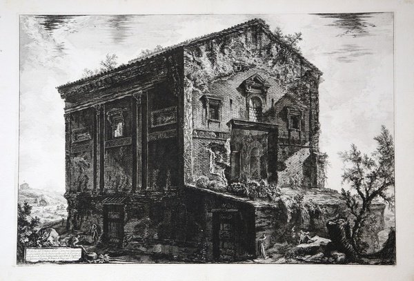 Veduta del Tempio delle Camene, anticamente circondato da un bosco nella valle di Egeria, si vede fuori di Porta Latina nell | Gravures | PIRANESI Giovan Battista