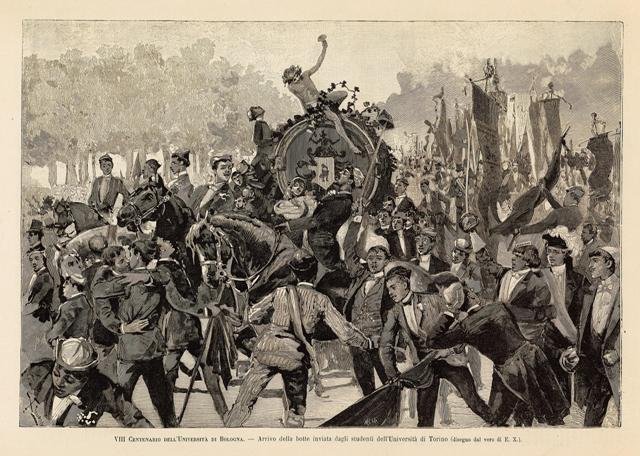 VIII Centenario dell’Università di Bologna / Arrivo della botte inviata dagli studenti dell’Università di Torino