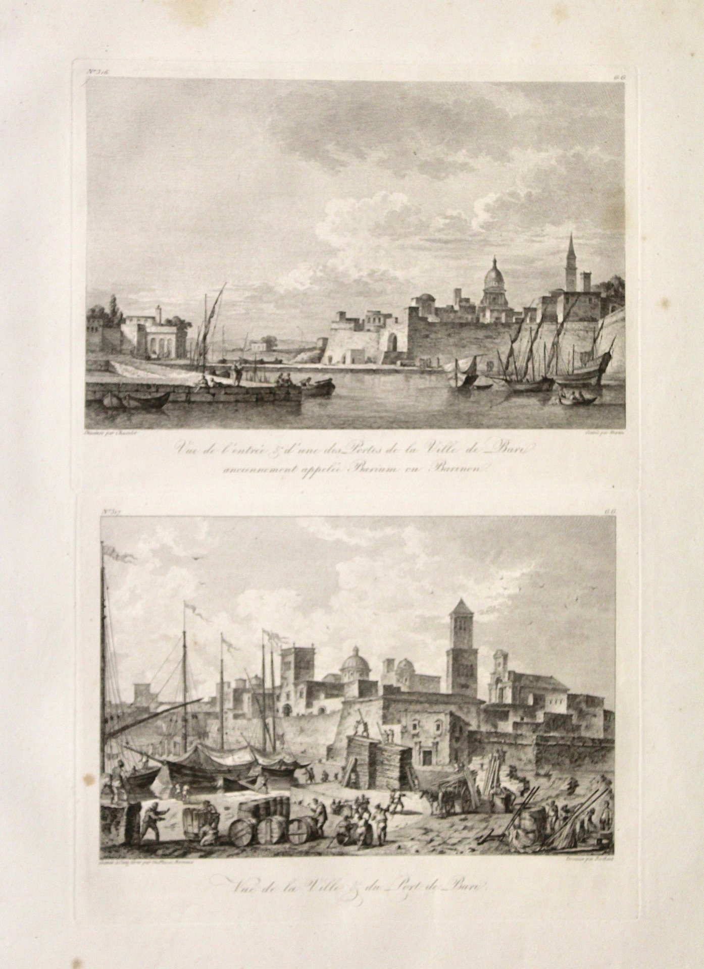 Vue de l'entrée & d'une des portes de la Ville de Bari anciennement appelée Barium ou Barinon . (Insieme a:) Vue de la Ville & du Port de Bari | Gravures | SAINT NON RICHARD, DE.