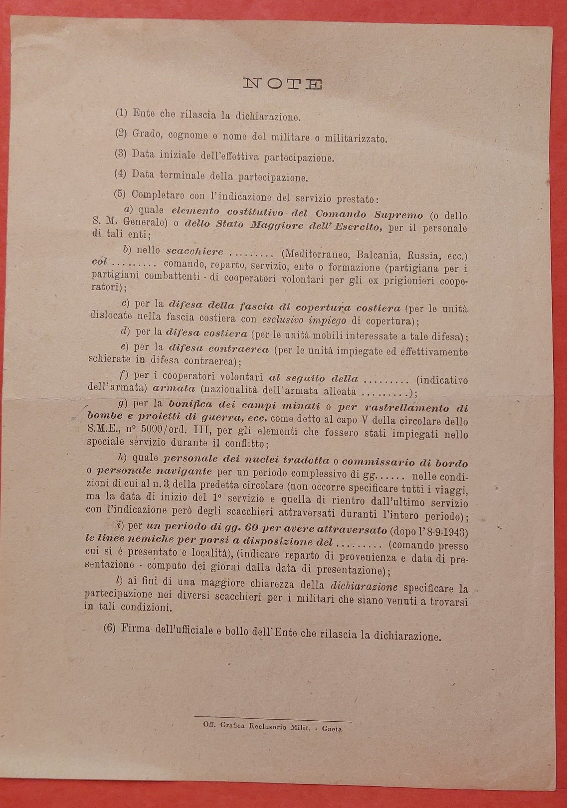 Dichiarazione Integrativa per l'Attribuzione di Benefici di Guerra. | Autografi |