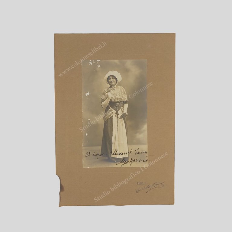 Fotografia con dedica e firma autografa invio a Manuel Vaccaro (1911 ca.).