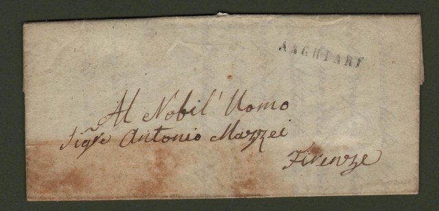 ANTICHI STATI. TOSCANA. ANGHIARI. Lettera per Firenze del 28 Aprile 1855. Lineare nero maiuscolo "ANGHIARI".
