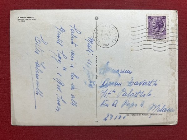 Cartolina - Albergo Ravelli - Mezzana ( Val di Sole ) - 1969 | Cartoline |