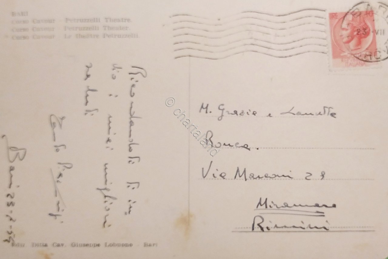 Cartolina - Bari - Corso Cavour - Teatro Petruzzelli - 1954 | Cartoline |
