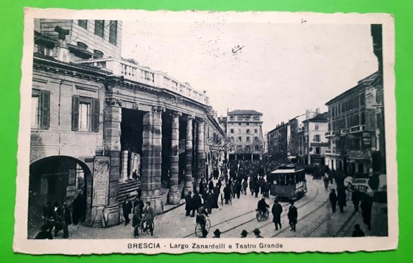 Cartolina - Brescia - Largo Zanardelli e Teatro Grande - 1930