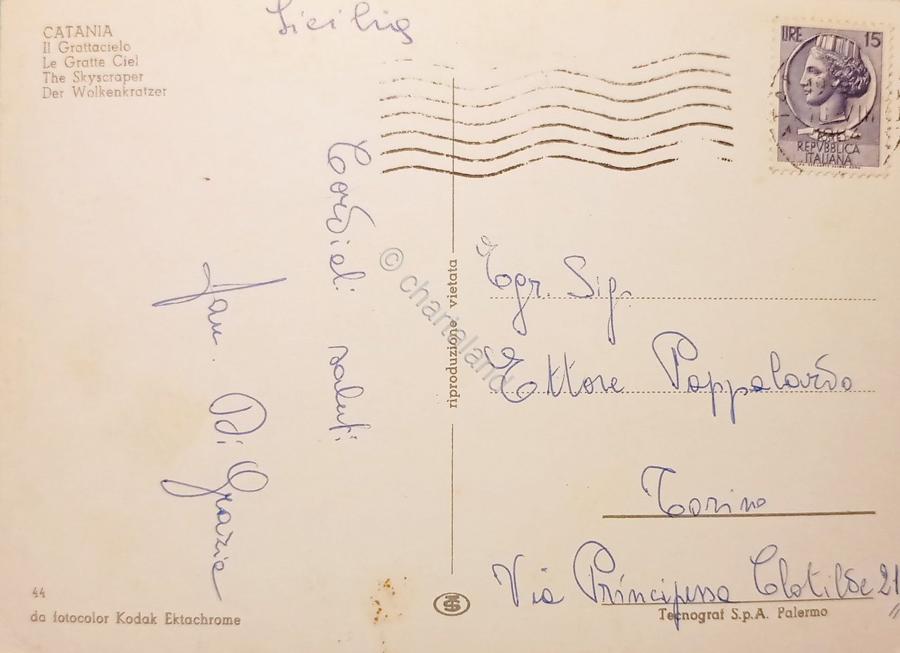 Cartolina - Catania - Il Grattacielo - 1962 | Cartoline |