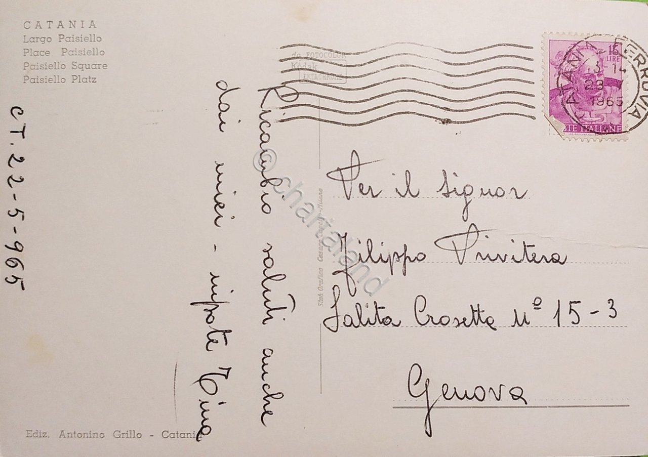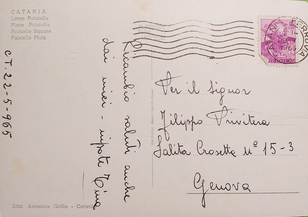 Cartolina - Catania - Largo Paisiello - 1965