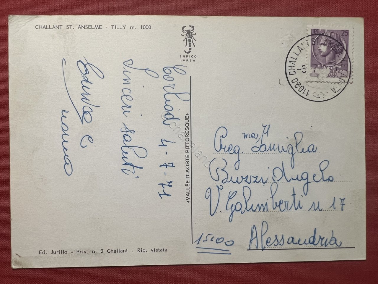 Cartolina - Challand St. Anselme ( Valle d'Aosta ) - Tilly - 1971