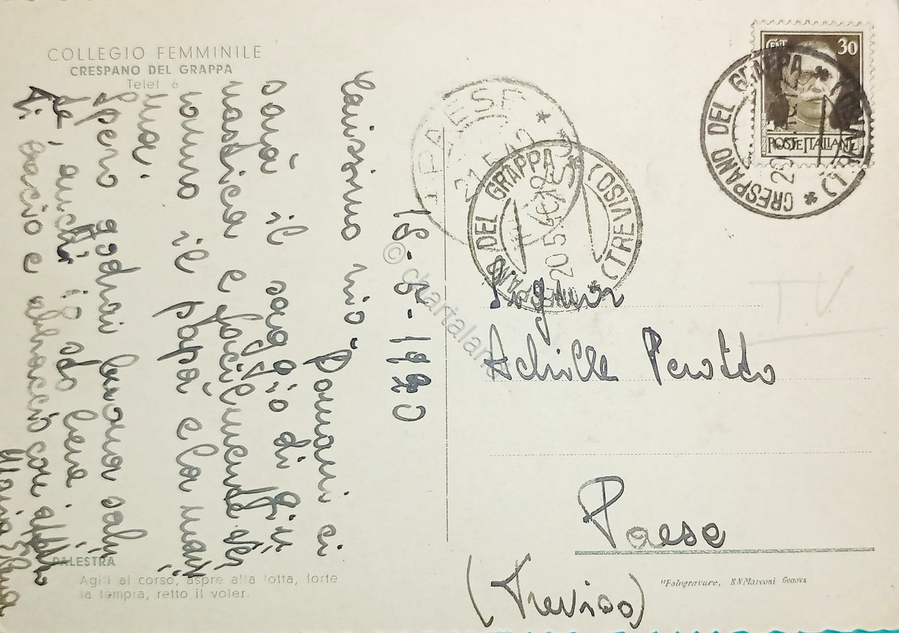 Cartolina - Collegio Femminile - Crespano del Grappa ( Treviso ) - 1940 | Cartoline |