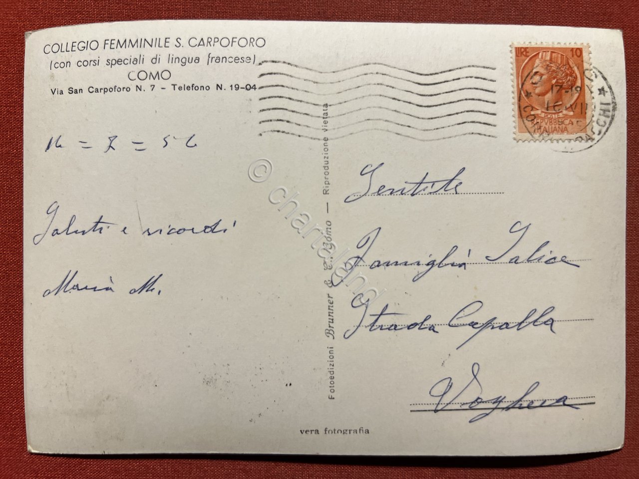Cartolina - Como - Collegio di S. Carpoforo - Lato Est con l'Abside - 1956 | Cartoline |