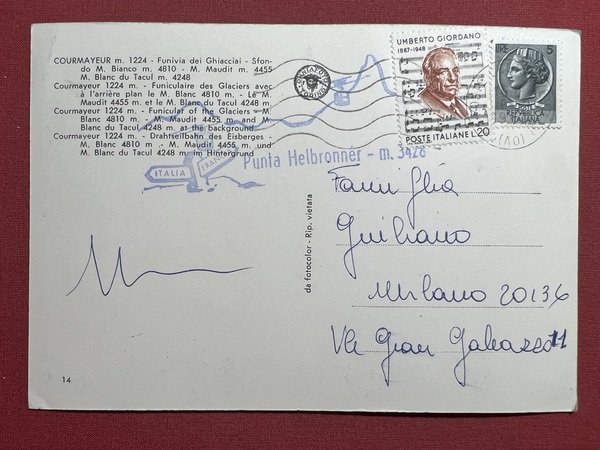 Cartolina - Courmayeur ( Valle d'Aosta ) - Funivia dei Ghiacciai - 1975 ca. | Cartoline |