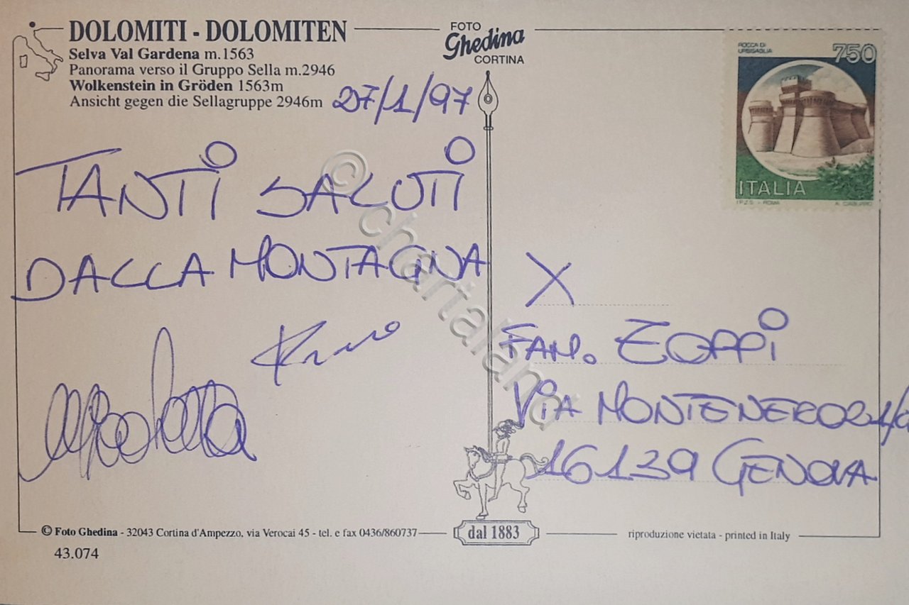 Cartolina - Dolomiti - Selva Val Gardena - Panorama verso il Gruppo Sella - 1997 | Cartoline |