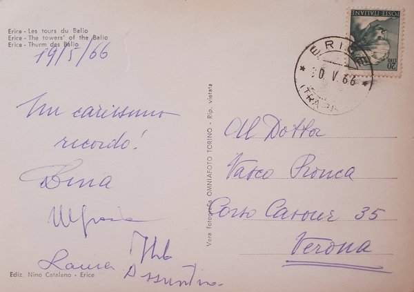 Cartolina - Erice - Le Torri del Balio - 1966 | Cartoline |