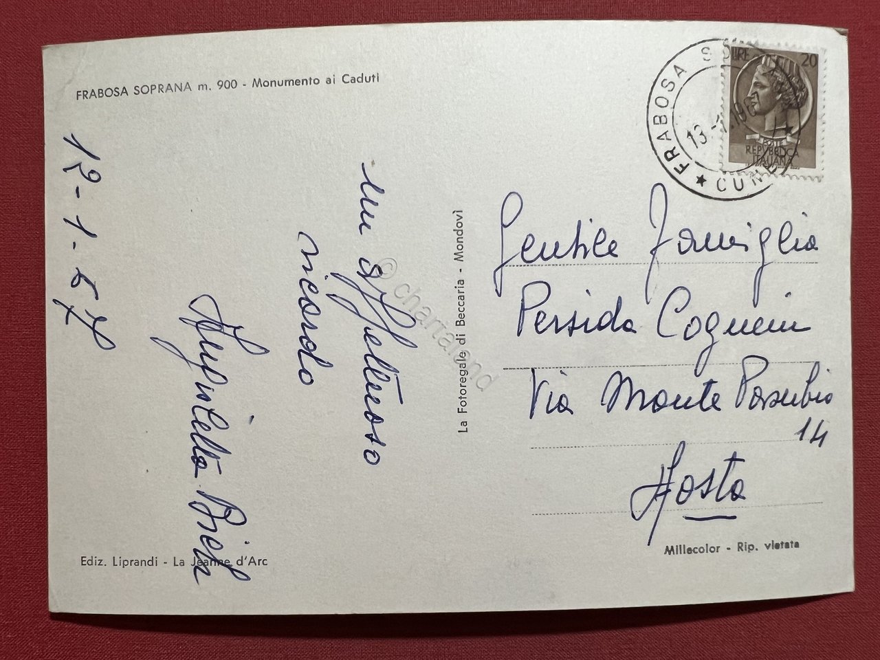 Cartolina - Frabosa Soprana ( Cuneo ) - Monumento ai Caduti - 1967 | Cartoline |