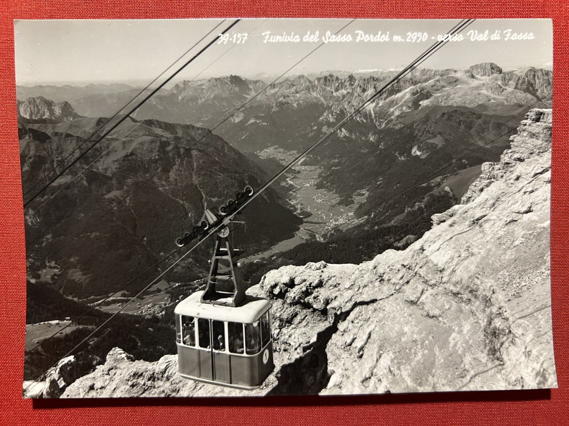 Cartolina - Funivia del Sasso Pordoi verso Val di Fassa - 1950 ca.