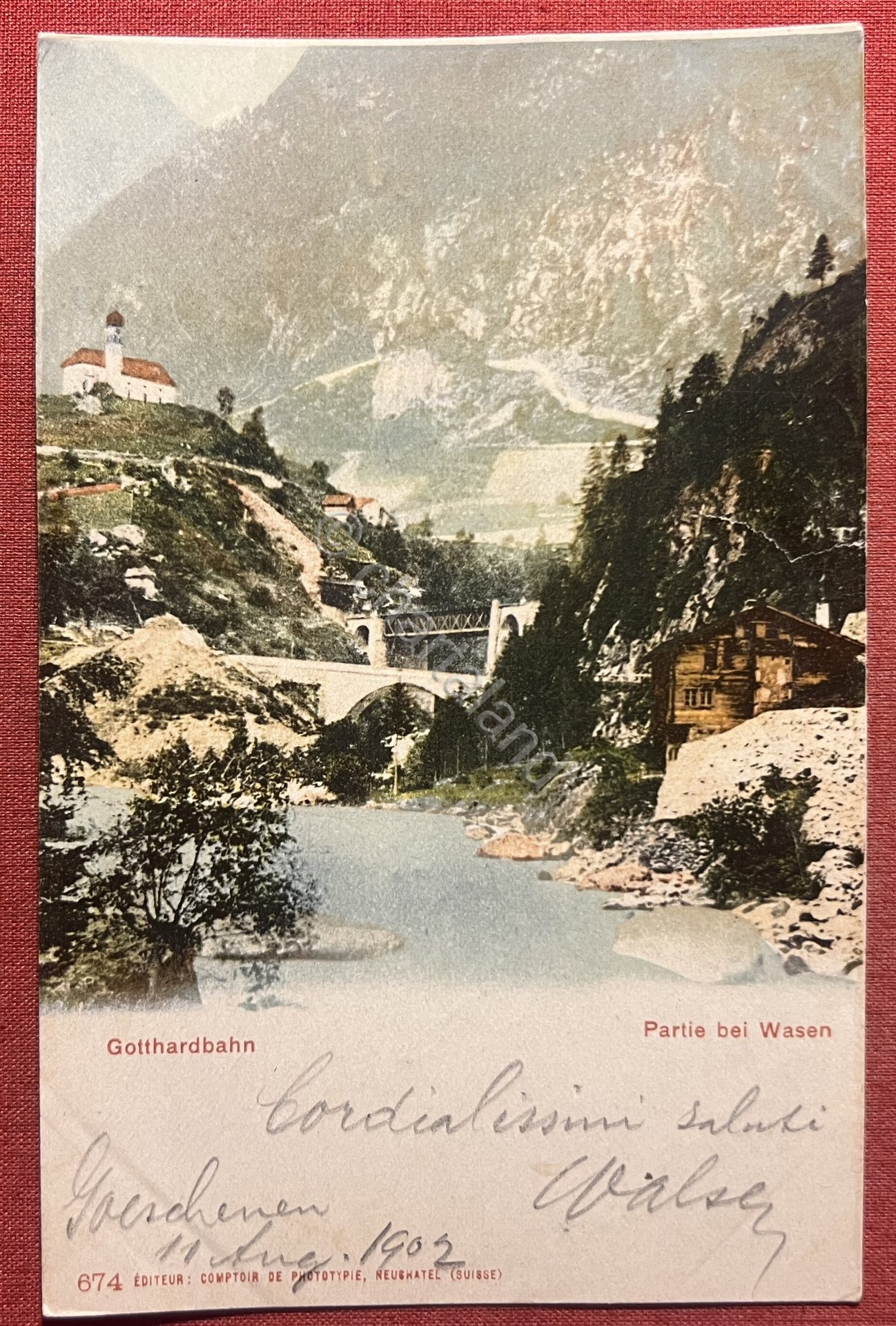 Cartolina - Gotthardbahn - Partie bei Wasen - 1902
