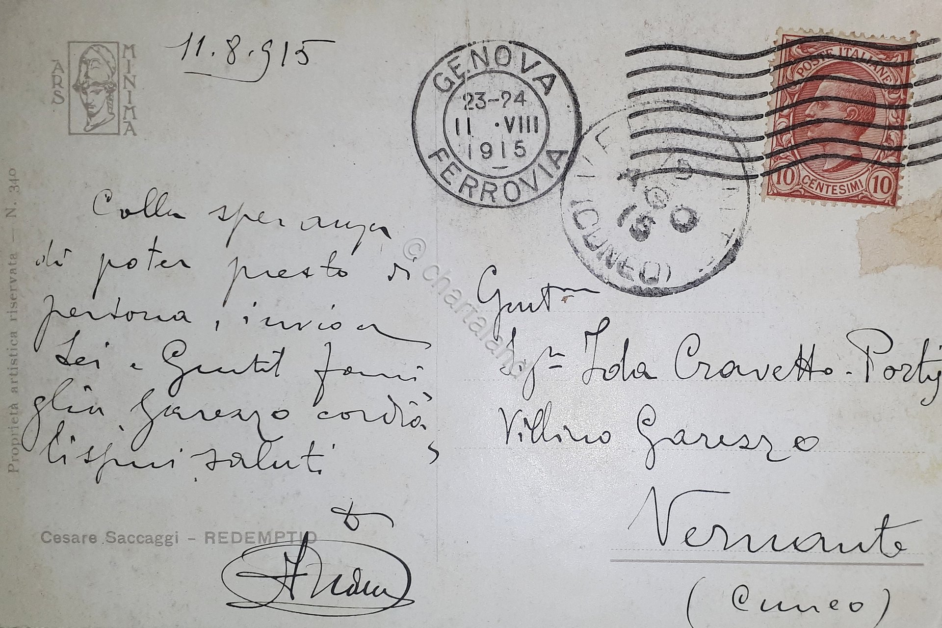 Cartolina - Illustratori - Cesare Saccaggi - Redemptio - 1915 | Cartoline |