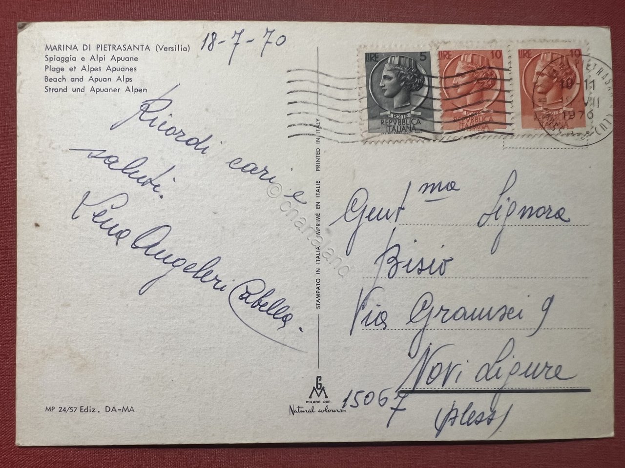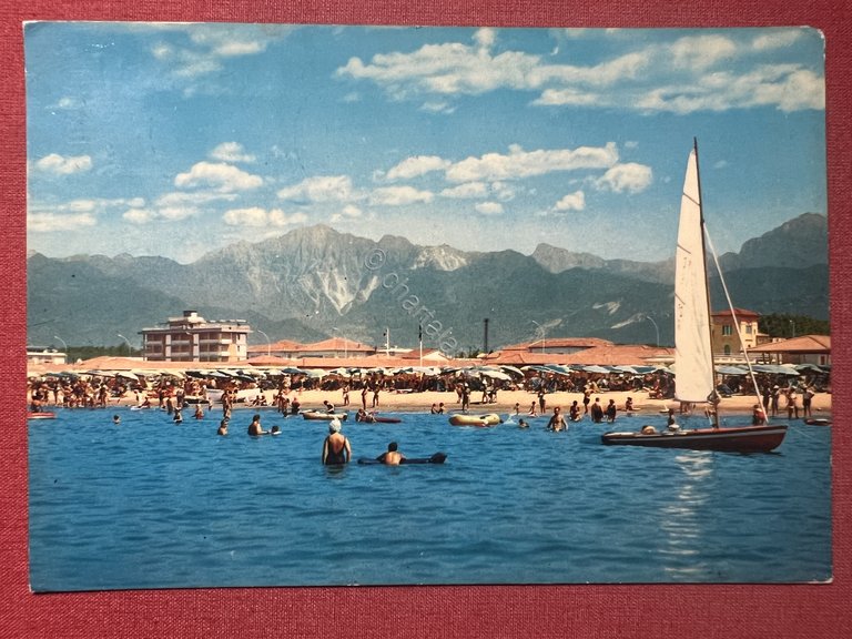 Cartolina - Marina di Pietrasanta ( Lucca ) - Spiaggia e Alpi Apuane - 1970
