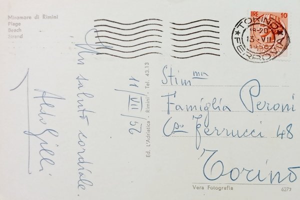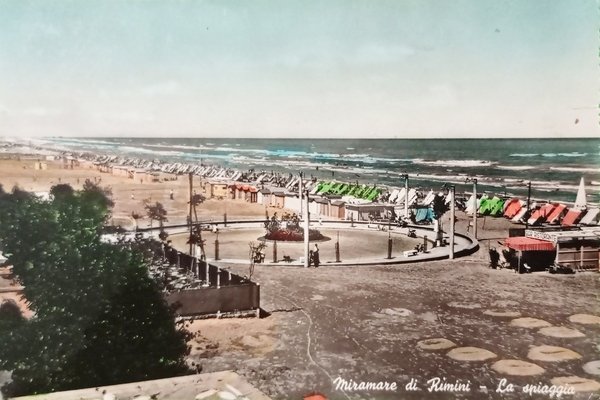 Cartolina - Miramare di Rimini - La Spiaggia - 1956 | Cartoline |