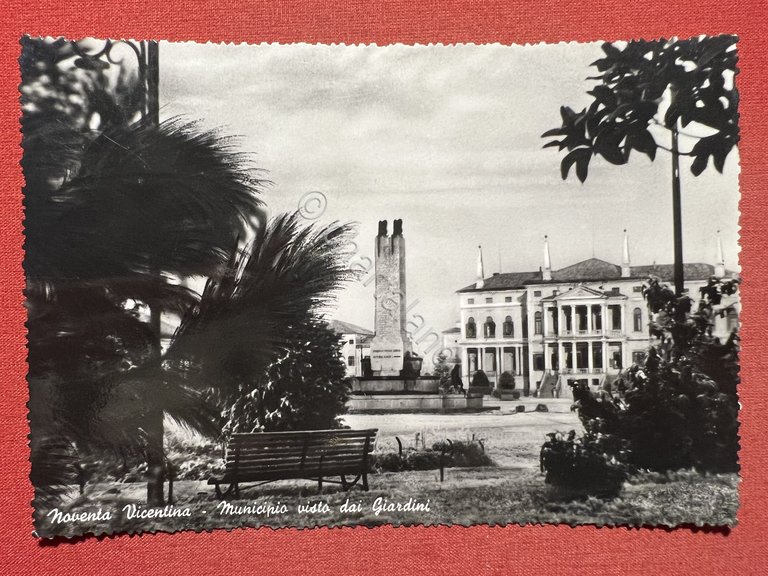 Cartolina - Noventa Vicentina ( Vicenza ) - Municipio visto dai Giardini - 1950 | Cartoline |