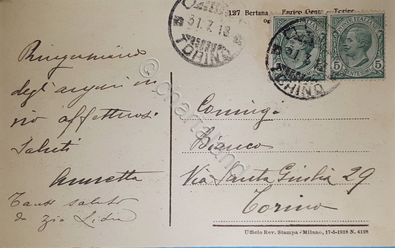 1918 Cartolina formato piccolo - viaggiata Condizioni molto buone, come da foto